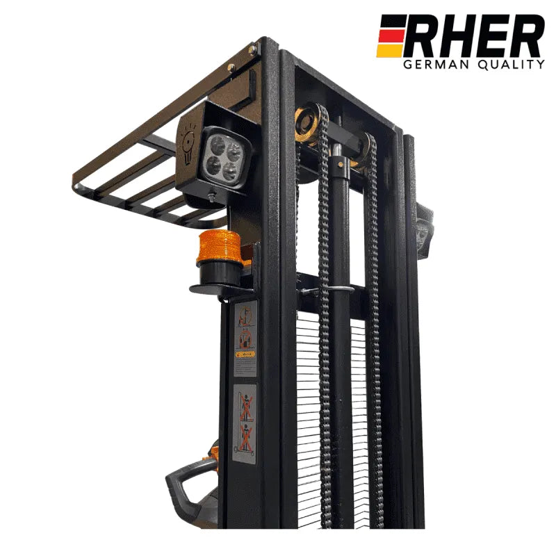 1500 Kgs / 3.5 metros. Apilador Rher Full Eléctrico Hombre a Bordo. Seguridad Europea con Baliza